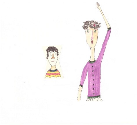 KAJ? Kje se bo med njima (ali med njima in nekom drugim, ki se pelje v sanjebusu, pa zaenkrat še ne vemo, kdo to je) zapletlo v zanimivo zgodbo izveš iz ilustracije štiri, ki je abstraktne oblike. Lahko je vse ali nič, lahko je žaba ali kradljivi fičfirič. Kdo ali kaj je povod za zaplet, poišči v domišljiji.